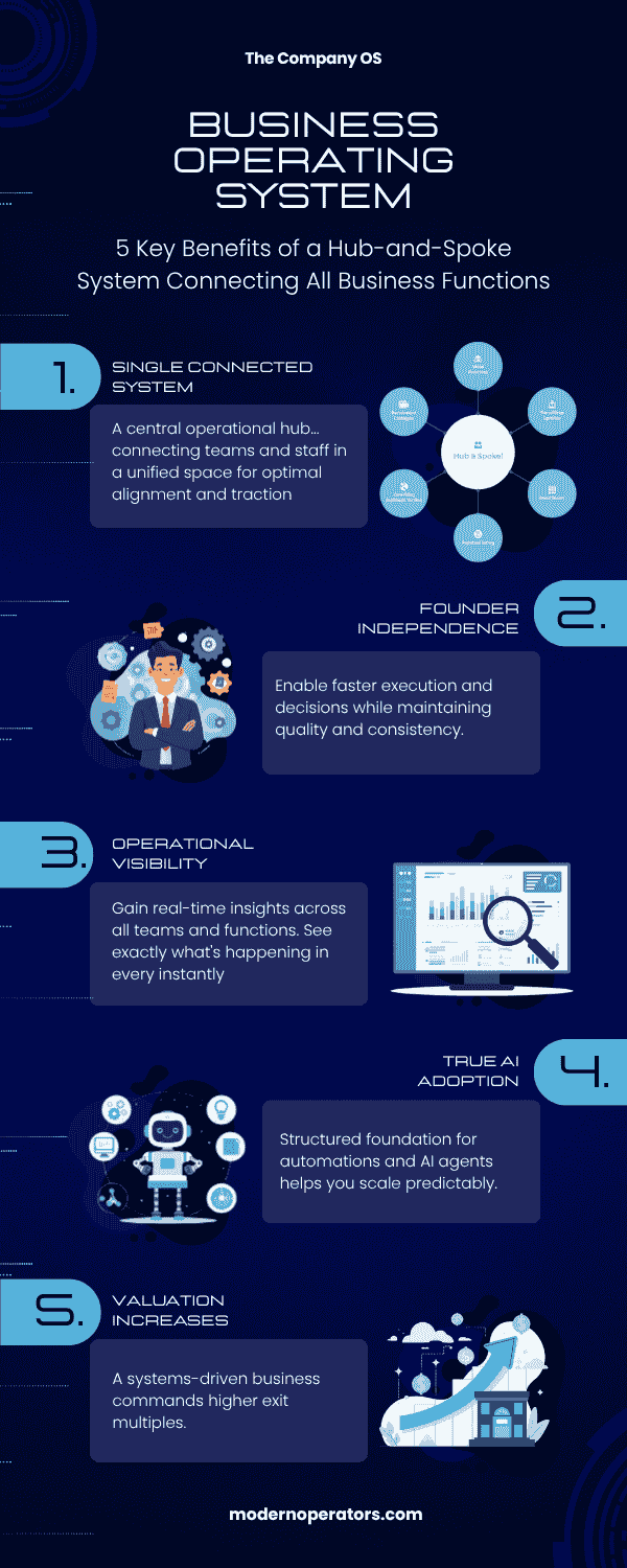 If your processes are inconsistent, your data is scattered, and your knowledge lives in 14 different places, AI will not save you. It will just help you create more system stress faster. But with a Company OS as your structured foundation…AI becomes a genuine multiplier. And, the business gets smarter as it scales, not more complicated.