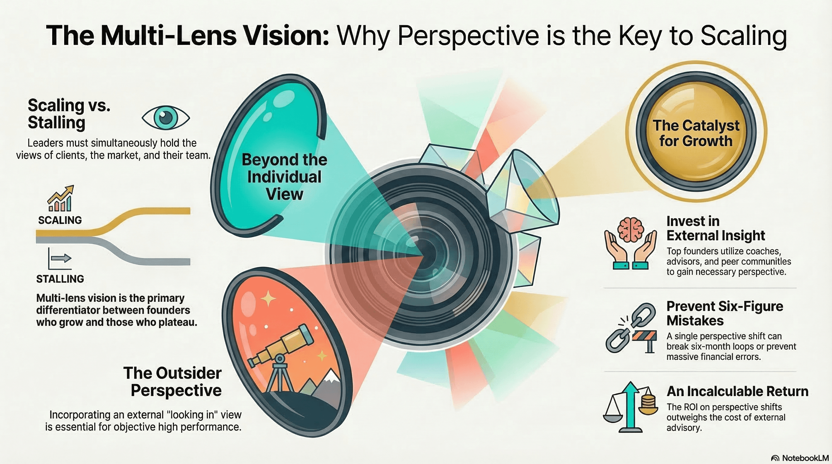 The best business leaders don't just hold their own view. They hold multiple views simultaneously… their clients', the market's, their team's, and an outsider looking in. That multi-lens vision is what separates the founders who scale from the ones who stall.