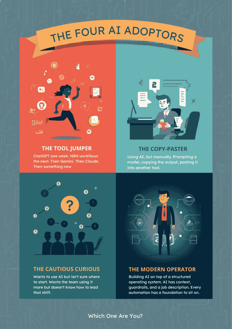 🔹 The Modern Operator: Building AI agents on top of a structured operating system. AI has context, guardrails, and a job description. Every automation has a foundation to sit on. These are the ones quietly pulling away from the pack.
